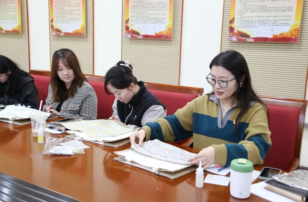 活动开始,刘洁老师对宋锦的工艺特点、历史渊源、文化价值,到制作手工包的技巧和注意事项进行了全方位的讲解。随后,教师们化身“非遗传承人”,全身心投入体验宋锦手工包的制作。从最初的精心构思设计,到细致裁剪布料,再到巧妙粘贴组装,每一个步骤都凝聚着大家对非遗文化的热爱。在这个过程中,教师们不仅掌握了手工包制作的基本技能,更在亲身体验中深刻感受到了非遗文化的独特魅力和深厚底蕴。