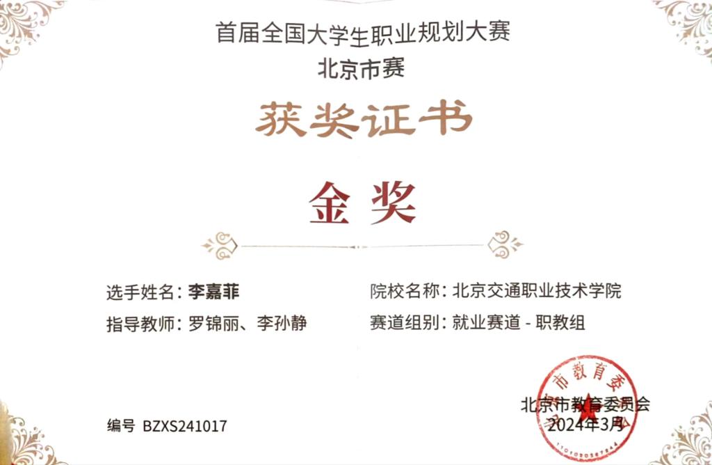 3月9日,首届全国大学生职业规划大赛北京市赛总决赛落下帷幕。我院汽车系21级计算机应用技术专业李嘉菲荣获就业赛道-职教组金奖!