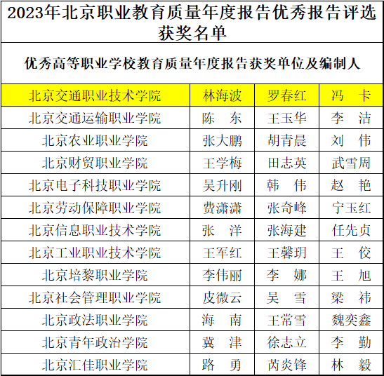 喜报 | 学院获得2023年北京职业教育质量年度报告优秀质量报告奖