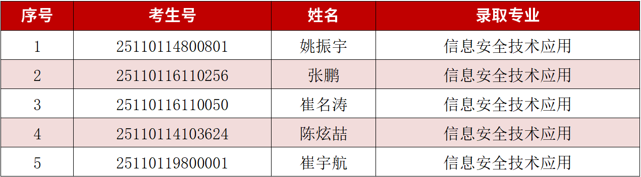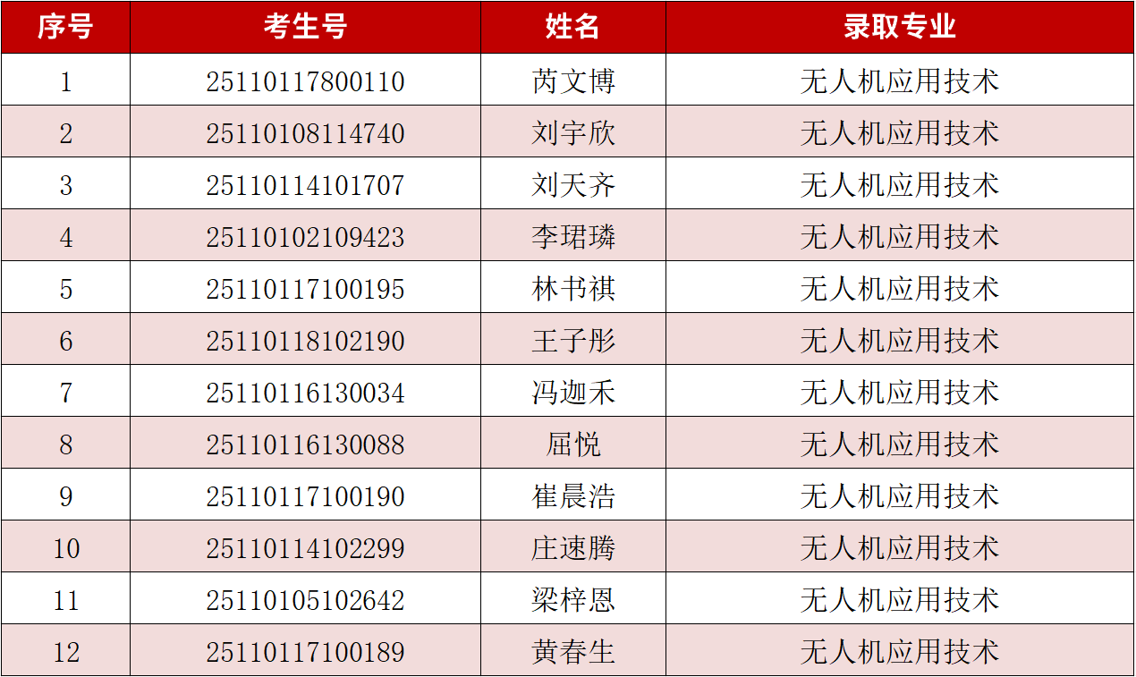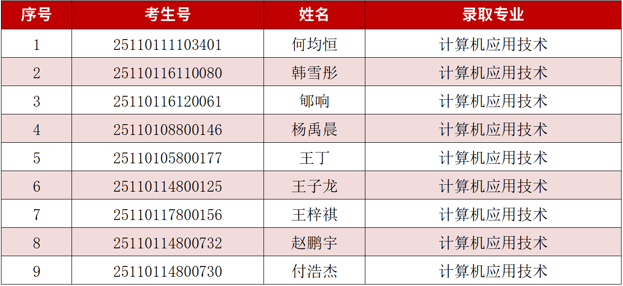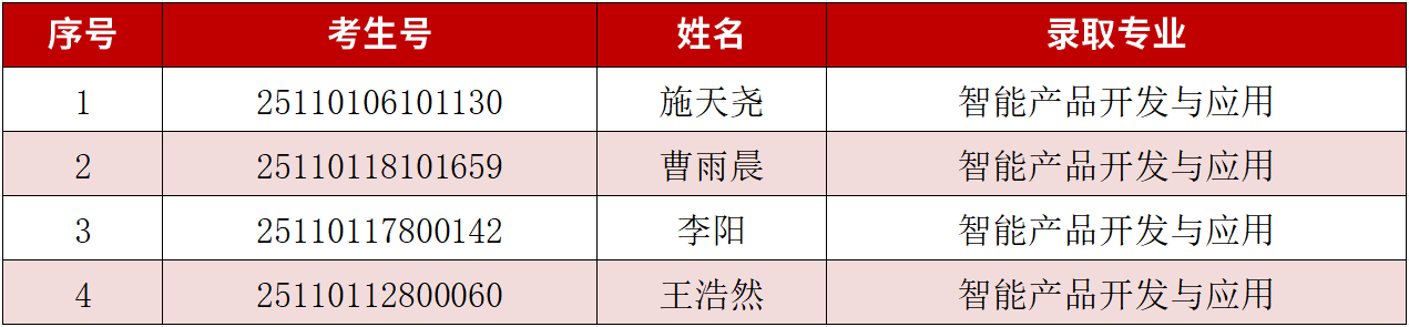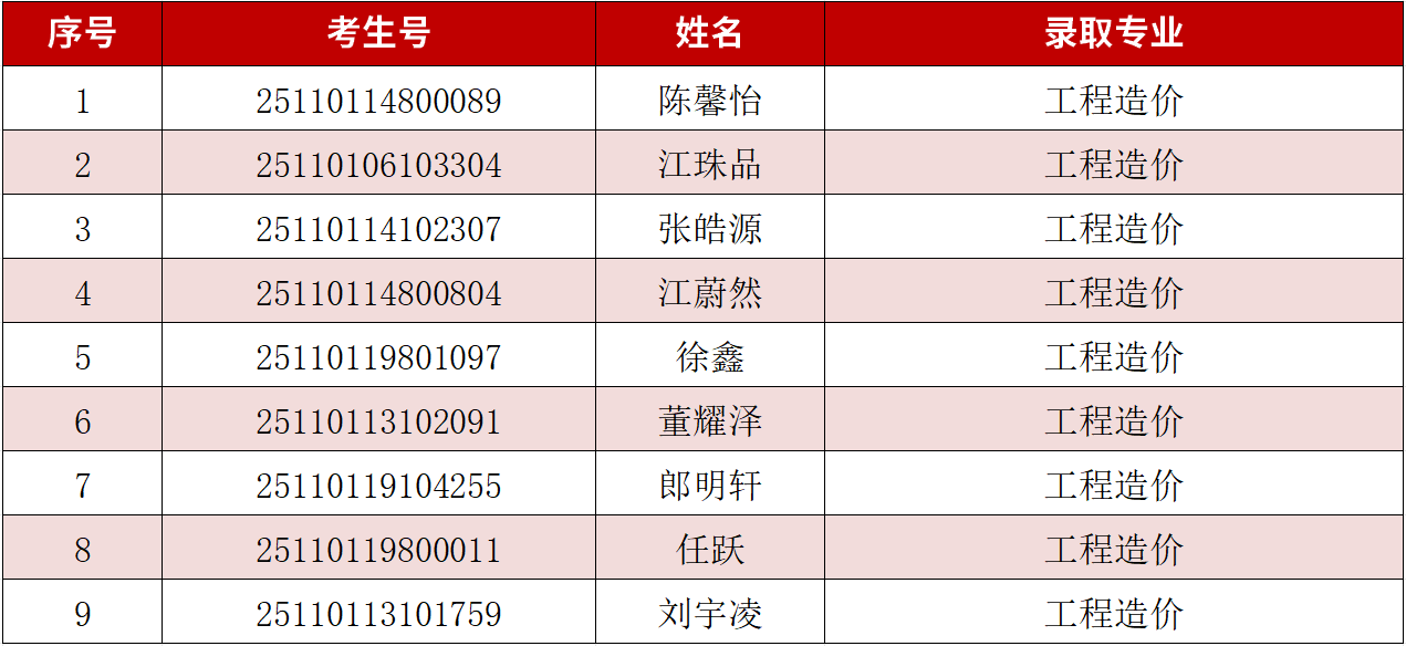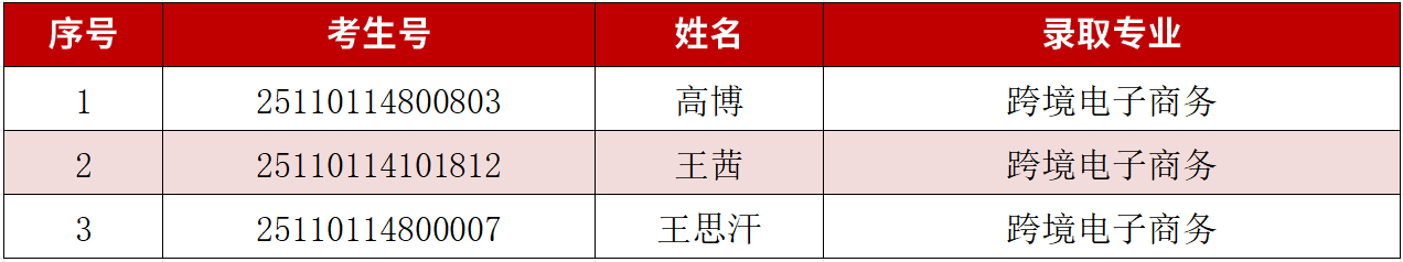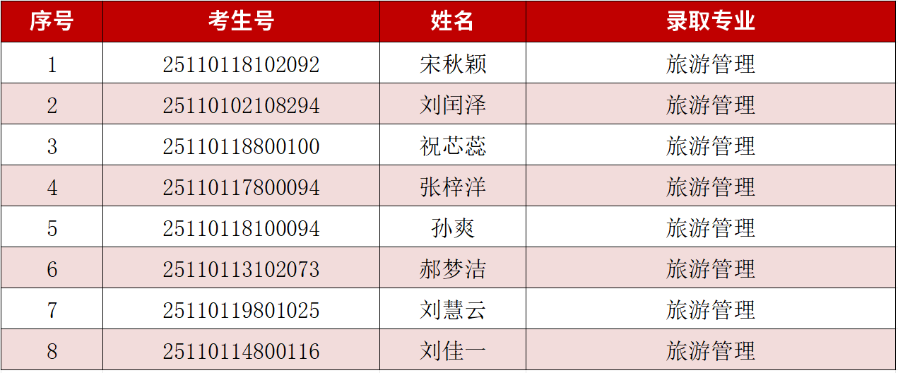 一、预录取名单