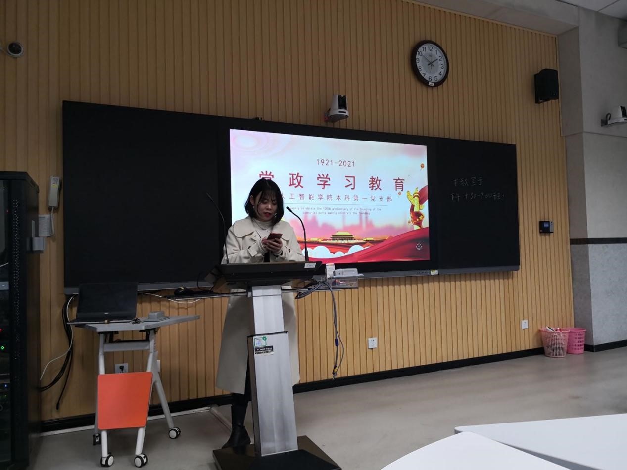 会议最后由支部副书记范紫琪作总结发言:“千年期盼,一朝梦圆。红旗渠是自力更生、艰苦创业的典范,不仅给后人留下了可以浇灌几十万亩田园的水利工程,更重要的是留下了宝贵的红旗渠精神。林县人民不仅把愚公移山的神话永远定格在太行山上,更把中国道路、中国力量和中国精神,镌刻在了这座太行丰碑之上。十年的功力与汗水、十年的艰辛与智慧、十年的心血与砥砺、十年的追梦与收获,孕育形成了‘自力更生、艰苦创业、团结协作、无私奉献’的红旗渠精神,深刻诠释了‘实干兴邦’的箴言。时光流转,穿越千年。红旗渠精神由前辈们塑造,由我辈来传承发扬。习近平总书记曾说‘时代的责任赋予青年,时代的光荣属于青年’,生逢盛世,我们成长在祖国高速发展的时期,人工智能产业方兴未艾,为我们的发展提供了广阔的舞台和有利的条件,能在这样的背景下追梦、圆梦,是我们的幸运,更是一份沉甸甸的责任。我们青年学子必当志存高远、脚踏实地,学习林县人民不怕苦、不怕累的精神,以咬定青山不放松的韧性和魄力走好我们这一代人的长征路,做那奔腾向前的洪流中一朵微小的浪花,为中华民族的伟大复兴奉献自己的一份力量。”