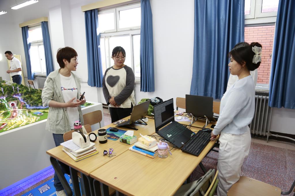 在实训场地,师生讲解员就实训室建设情况进行了介绍,并展示了利用专业技能为区域经济社会发展做出的成果。