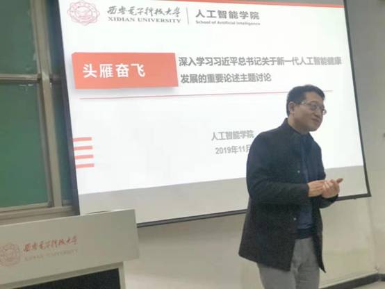 (通讯员 刁许玲)2019年11月20日,vwin德赢ac米兰官方网17级第一党支部、17级第二党支部及18级第二党支部在北校区西大楼105联合举办了头雁奋飞——深入学习习近平总书记关于新一代人工智能健康发展的重要论述心得分享交流会。会议由17级第二党支部副书记田英轩主持,vwin德赢ac米兰官方网党委书记魏峻、副书记高晖出席本次会议。