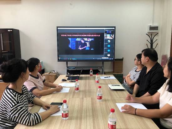 学院组织教师代表在北校区办公楼I-208会议室线上观看表彰大会,大家纷纷表示,一代代西电教师,用坚定的信念引领学生,用深厚的情怀激励学生,用丰富的学识造就学生,能深切地感受到优秀教师的精神力量。