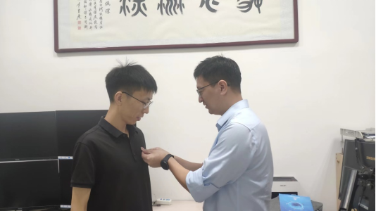 为新入职教师佩戴校徽
