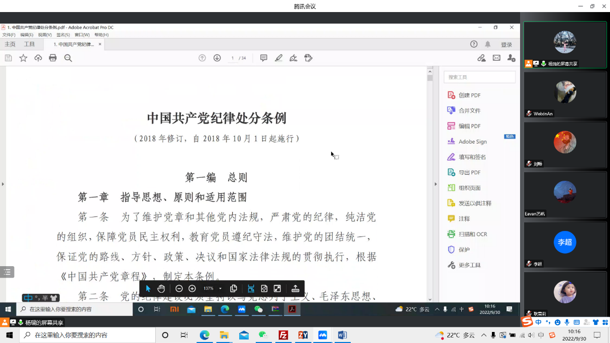 为抓好纪律教育学习的组织落实,博士第一党支部把纪律教育宣传月活动列入支部工作重要议事日程,采取了一系列措施确保教育活动落到实处。9月12日,支部召开支委会,党支部书记刘梦琨传达了《vwin德赢ac米兰官方网党委关于在全院开展纪律教育宣传月活动的通知》文件精神。会议强调,要把纪律教育学习宣传月活动作为支部加强作风建设的重要抓手,深入开展党性教育、纪律教育、警示教育和廉洁文化教育,深化廉洁校园建设,为扎实落实好立德树人根本任务营造风清气正的校园环境。随后,支委会研究活动实施方案,细化量化活动时间、内容、方法、步骤等,为保证活动取得实效奠定了基础。