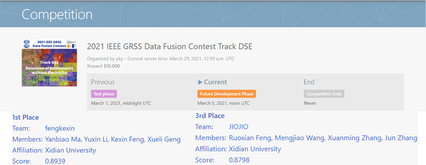 (通讯员:杨育婷 王丹)2021年3月26日,2021 IEEE GARSS数据融合竞赛组委会官方邮件发来喜报,vwin德赢ac米兰官方网三度问鼎冠军奖项,在本届大赛中获得1冠军、2季军的优异成绩。本届大赛参赛队伍由学院焦李成教授、刘芳教授、屈嵘教授、刘旭博士,团队博士生杨育婷、黄钟健、张俊、耿雪莉、孙龙,硕士生尹淑婷及陈大帆共同指导,获奖的三支队伍应邀将于7月在比利时布鲁塞尔召开的2021年IEEE国际地球科学与遥感大会(...